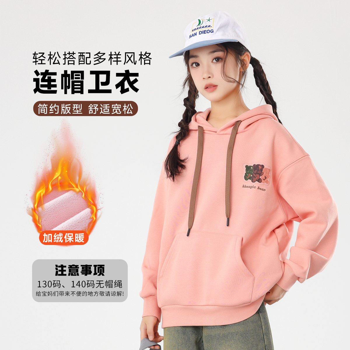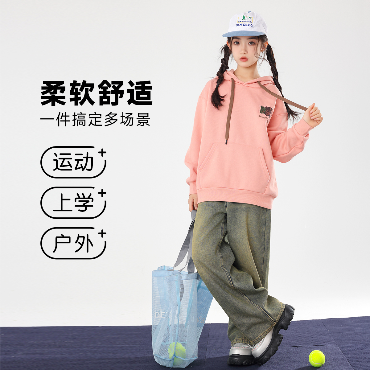 2025秋冬新款女童加绒连帽卫衣洋气中大童少女绒衫保暖学生潮童装