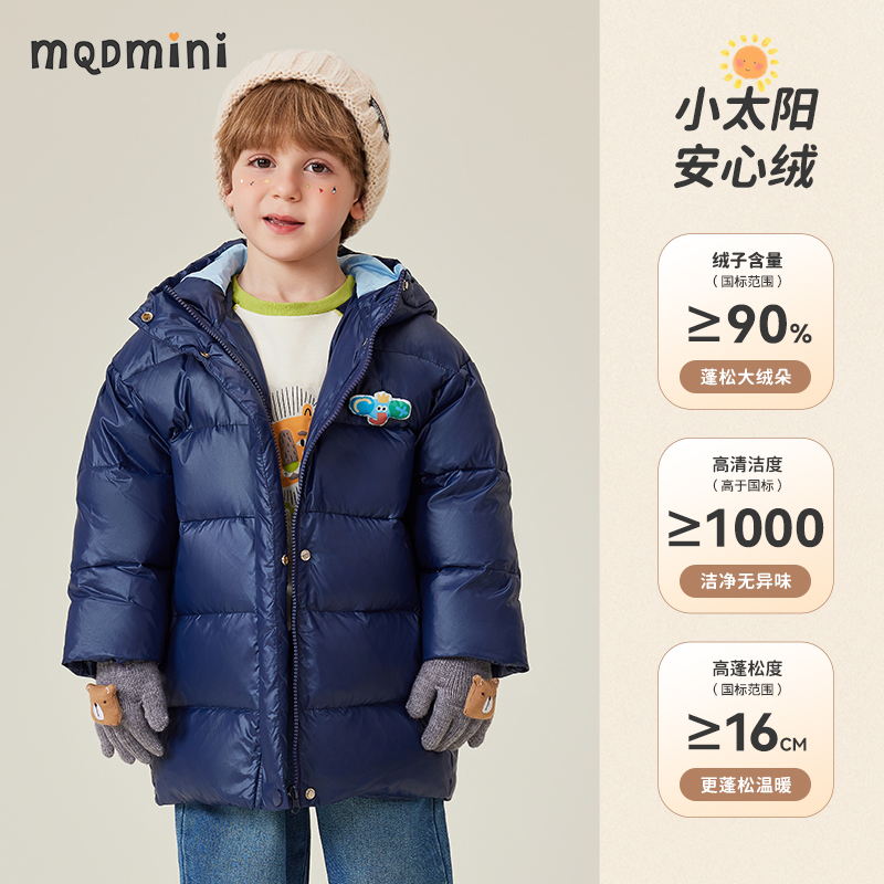 MQDmini儿童羽绒服女童外套2025新款冬季宝宝连帽加厚男童冬装