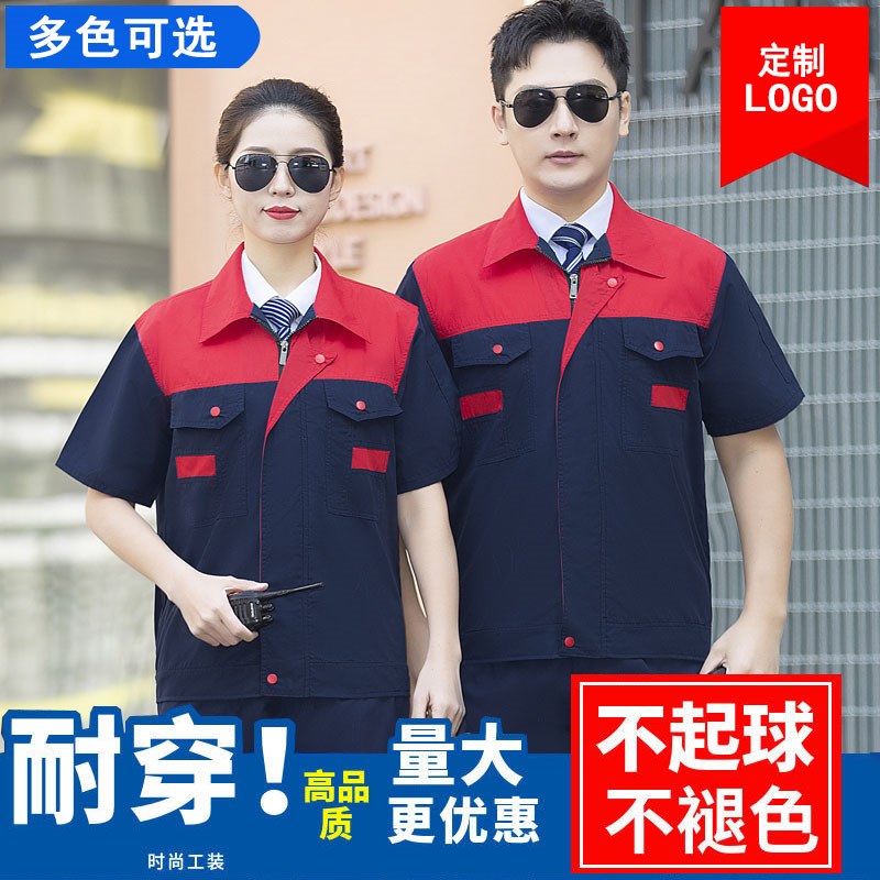 夏季薄款短袖套装工作服男女士定制耐磨上衣汽修工厂车间劳保工装