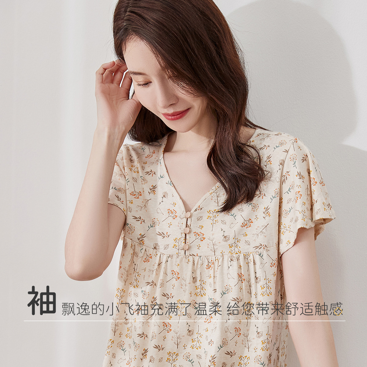顶瓜瓜女士彩棉v领短袖家居服