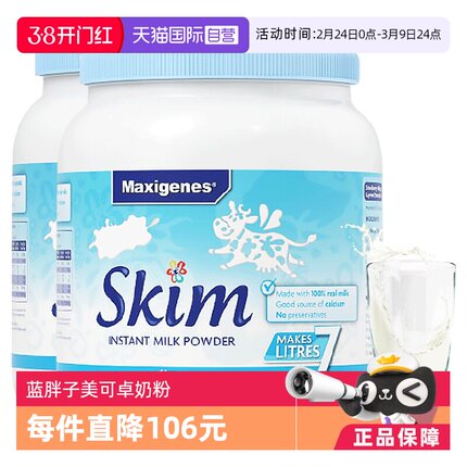 【自营】澳洲美可卓蓝胖子脱脂低脂牛奶粉老年高钙早餐蓝妹子2罐