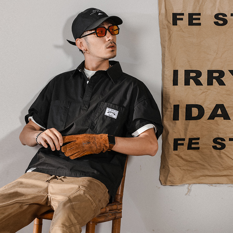 纯棉日系短袖简约衬衫男夏季薄款Polo衫宽松大码t恤休闲男装衬衣