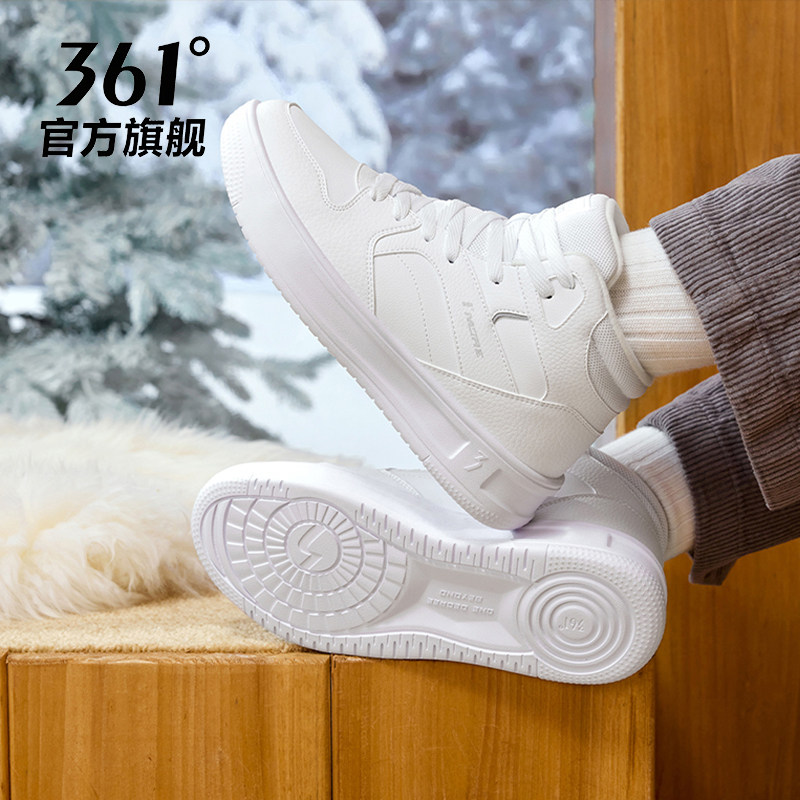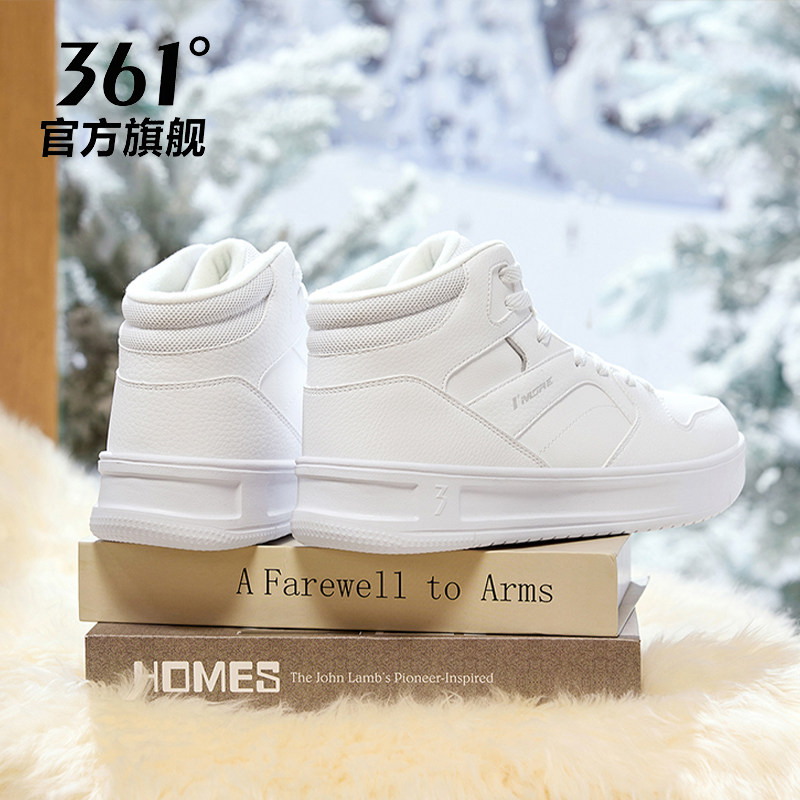 361加绒运动鞋男鞋2025冬季新款保暖休闲鞋男防水高帮板鞋小白鞋