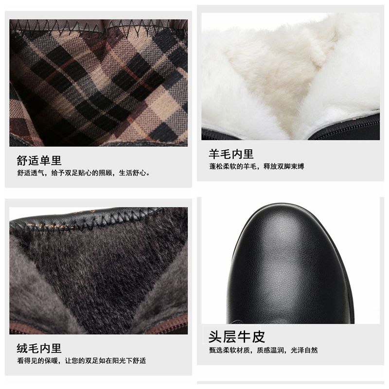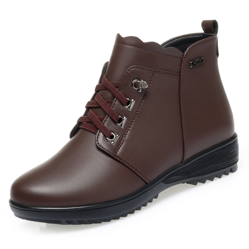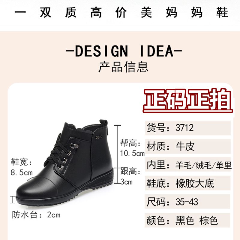 他她女孩全牛皮真皮女短靴冬季加绒加厚羊毛中老年舒适棉鞋软底单
