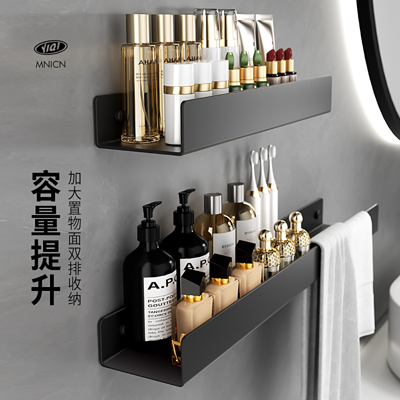 卫生间304不锈钢置物架毛巾一体镜前厕所浴室墙上免打孔收纳架子