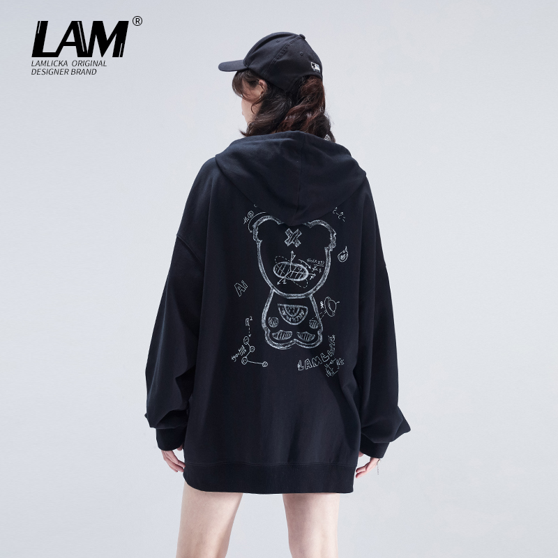 LAMLICKA加绒加厚开衫拉链卫衣小熊印花oversize宽松秋冬外套女潮