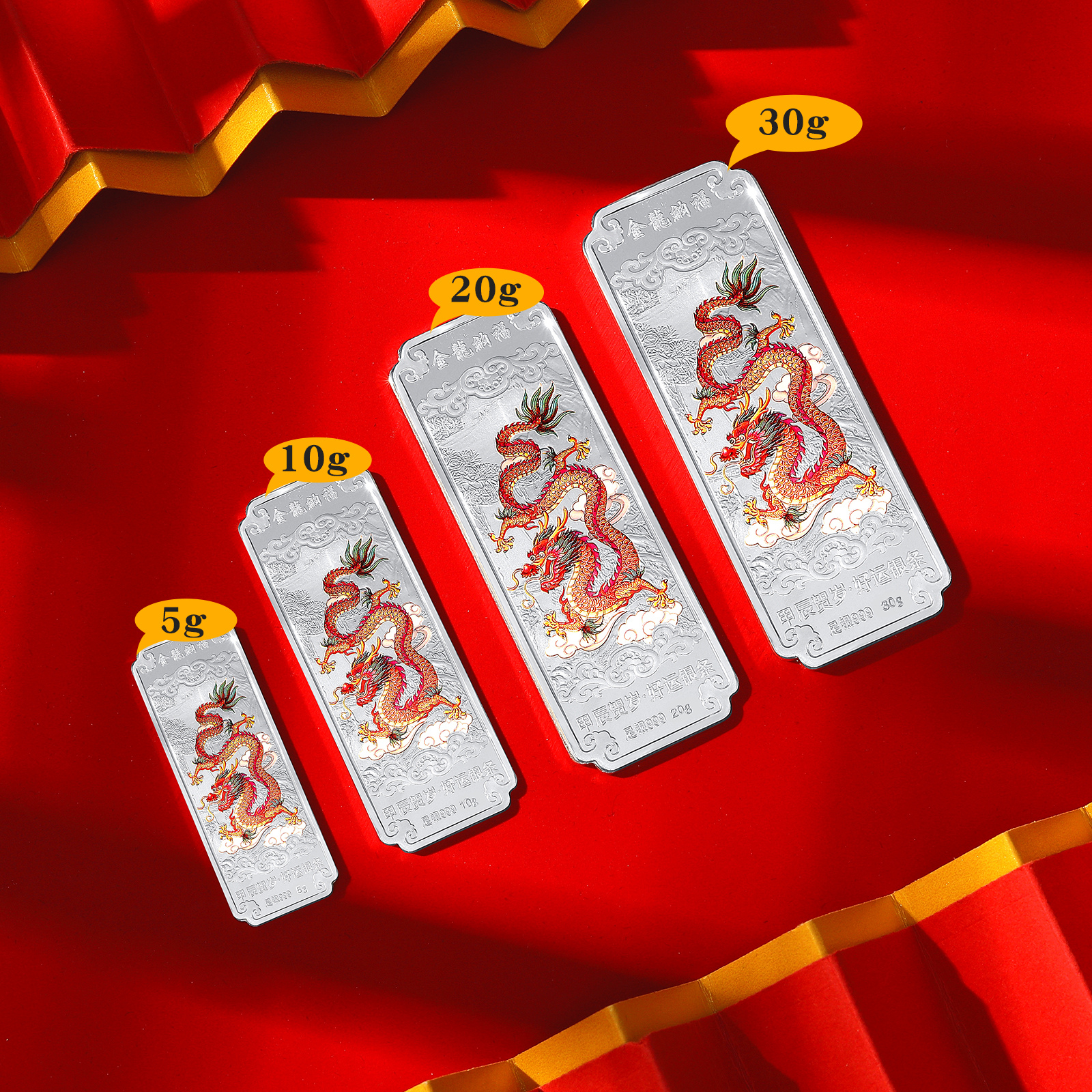 龙年生肖纯银银条套装摆件贺岁纪念收藏公司年会定制高档纪念礼品