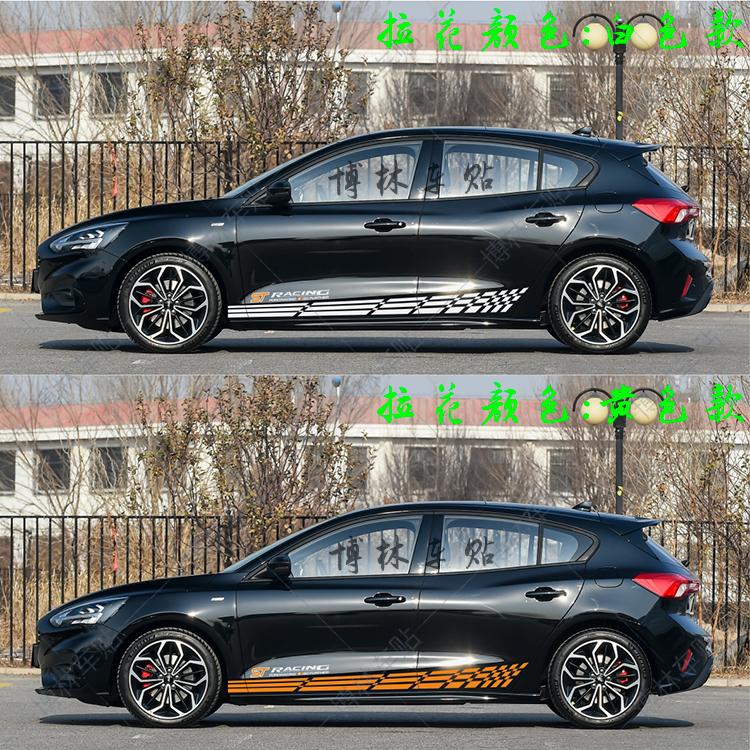适用福特福克斯两三厢STRS外观改装饰车身拉花贴纸侧裙车贴裙边贴