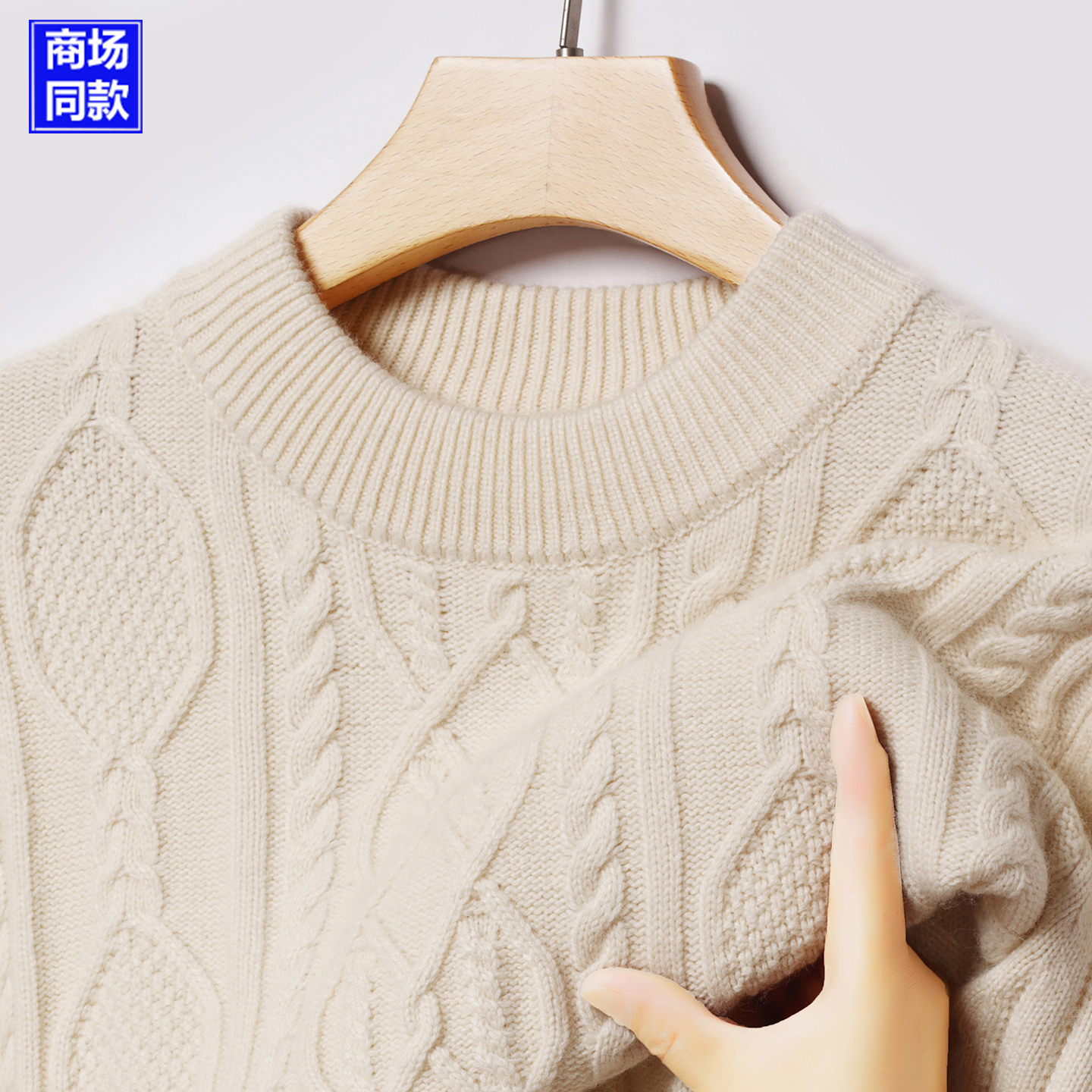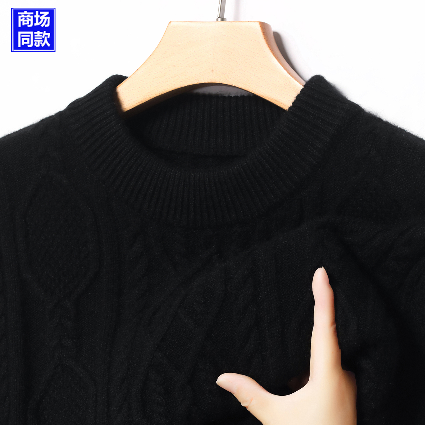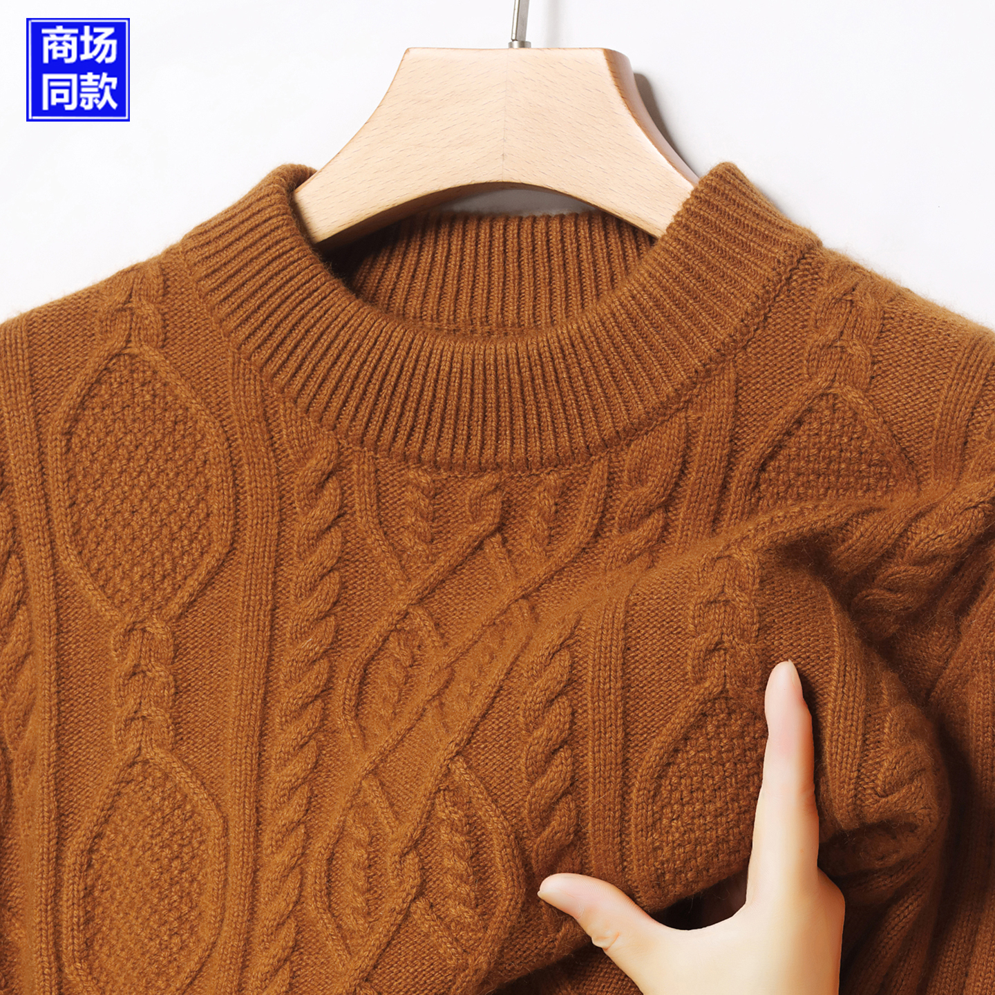 鄂尔多斯市高端羊绒衫男士半高领加厚款毛衣保暧麻花羊毛打底衫