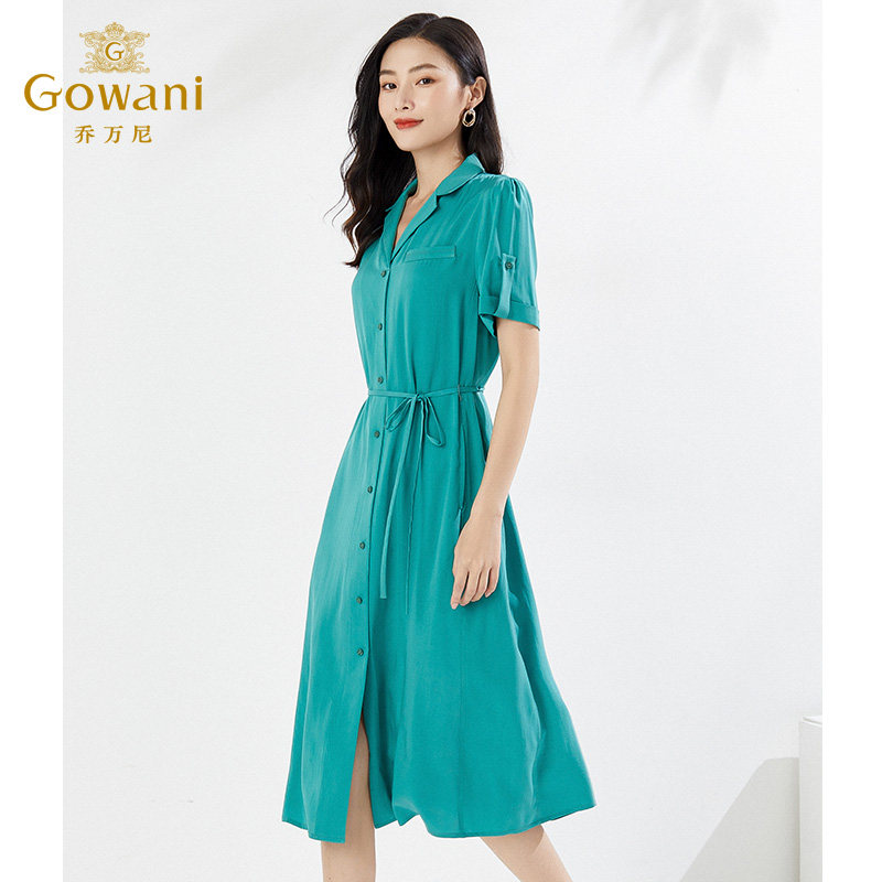 乔万尼真丝v领连衣裙好看流行夏季气质休闲桑蚕丝商场同款EI2E879