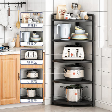热销多功能厨房转角置物架缝隙拐角落地锅具多层三角放储物架收纳