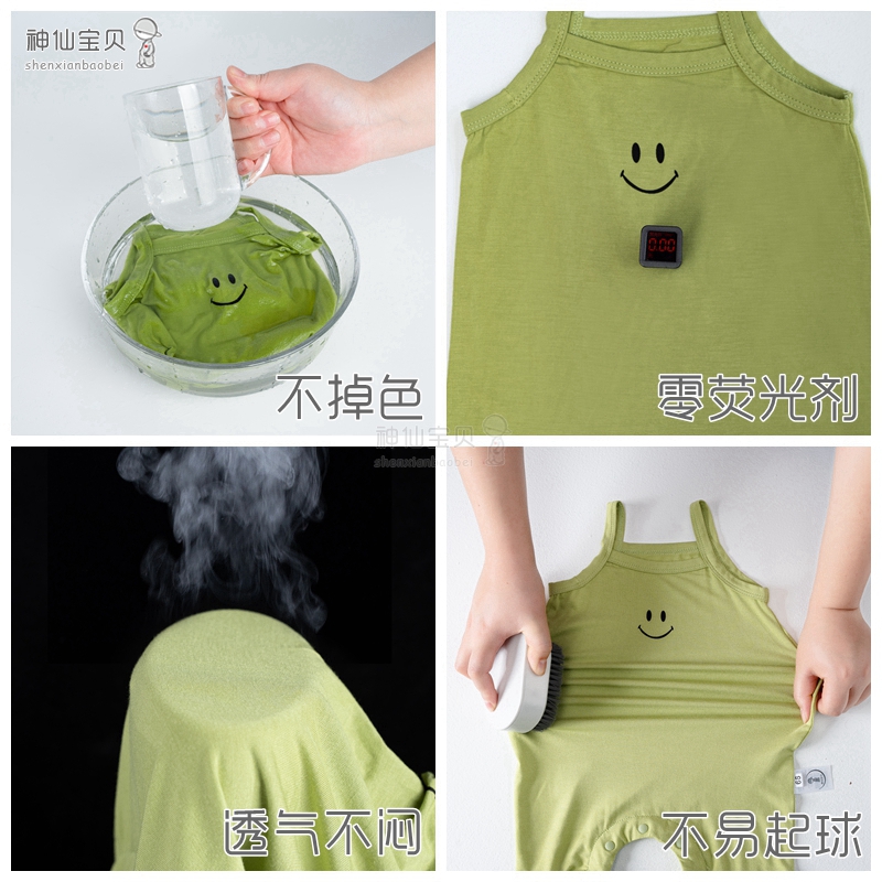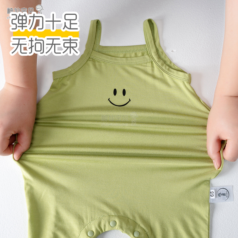 莫代尔婴儿吊带薄款背心哈衣宝宝睡衣冰丝连体衣家居服夏装爬爬服