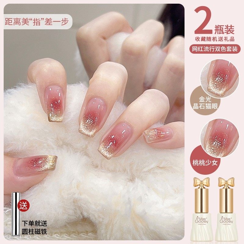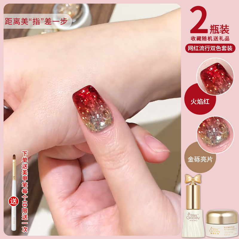 新年发财红色指甲油胶2025年新款显白爆闪玻璃珠猫眼双色美甲专用