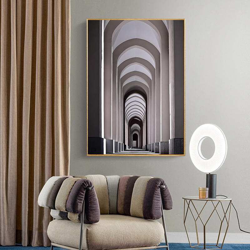 入户玄关装饰画建筑延伸画走廊过道尽头挂画竖版现代简约抽象壁画