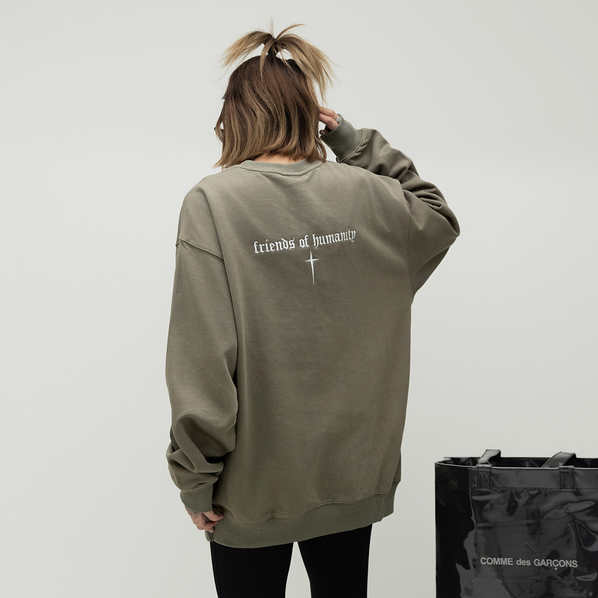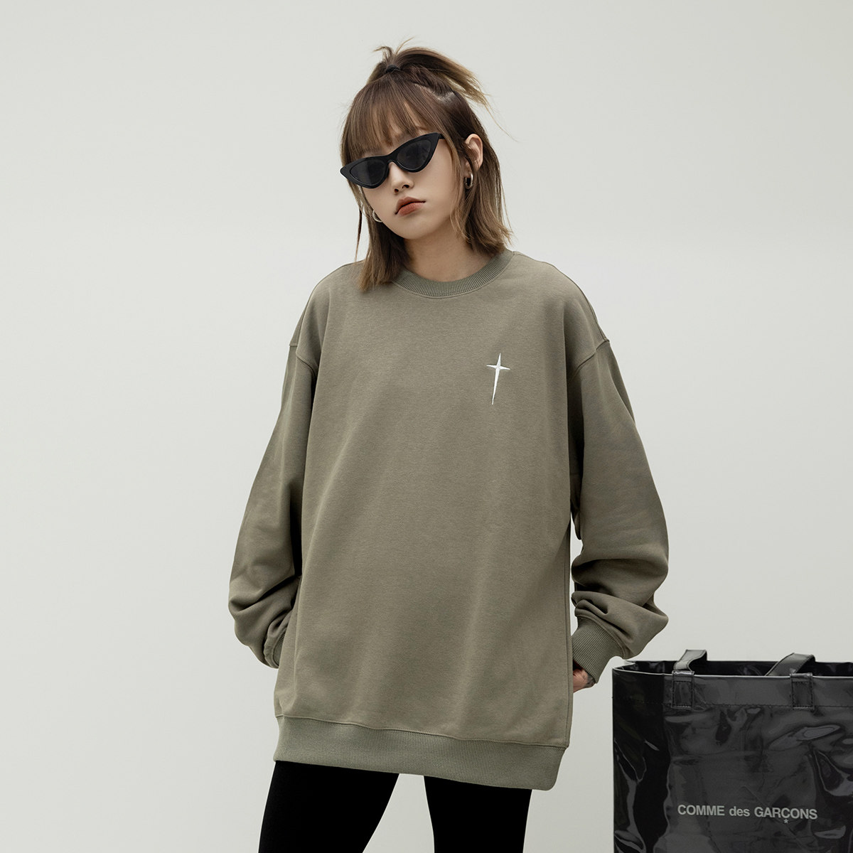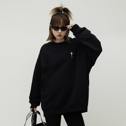 ONE PASS 刺绣字母圆领卫衣女2023春季新款潮牌宽松情侣套头上衣