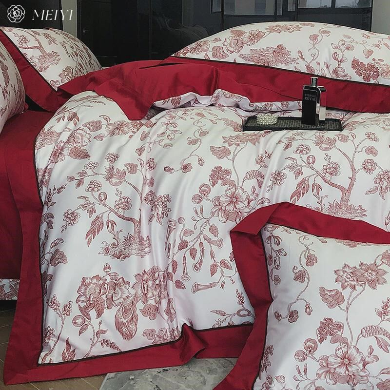 轻奢高级感婚庆100S长绒棉床单四件套纯棉结婚喜被罩红色床上用品