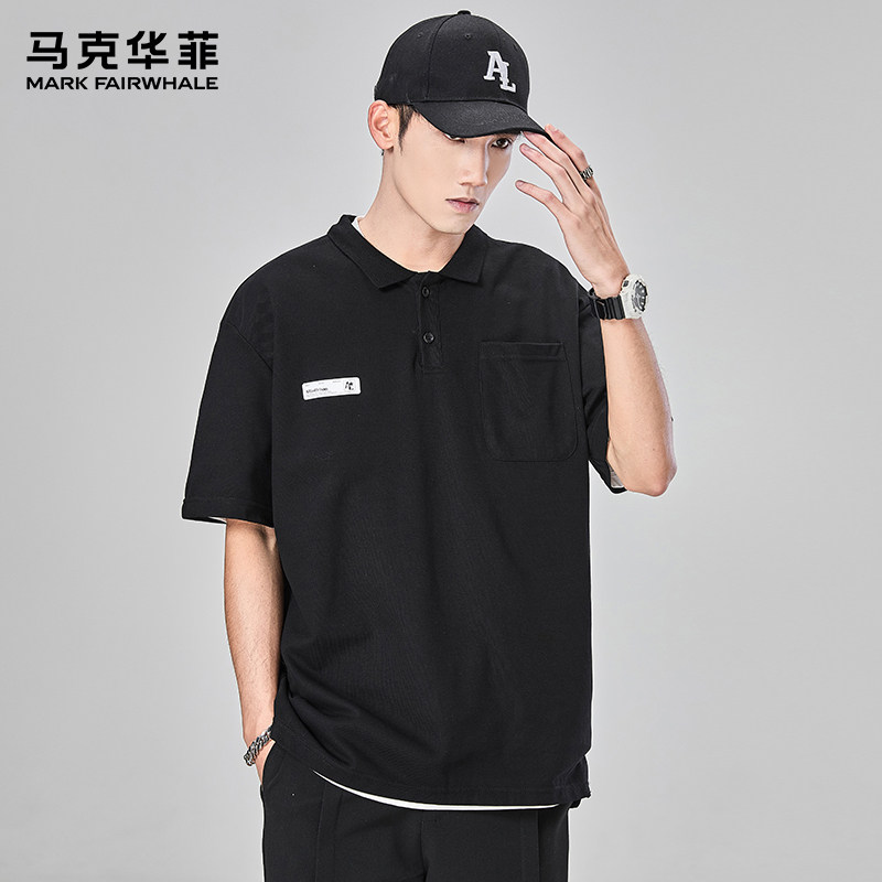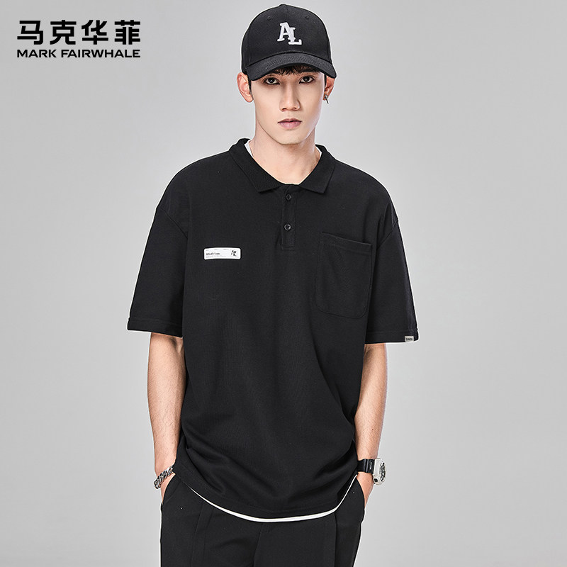 马克华菲日系潮牌polo衫男夏季cityBoy宽松口袋短袖百搭翻领T恤衫