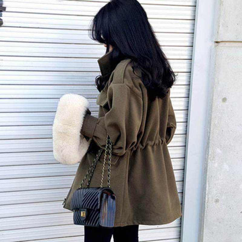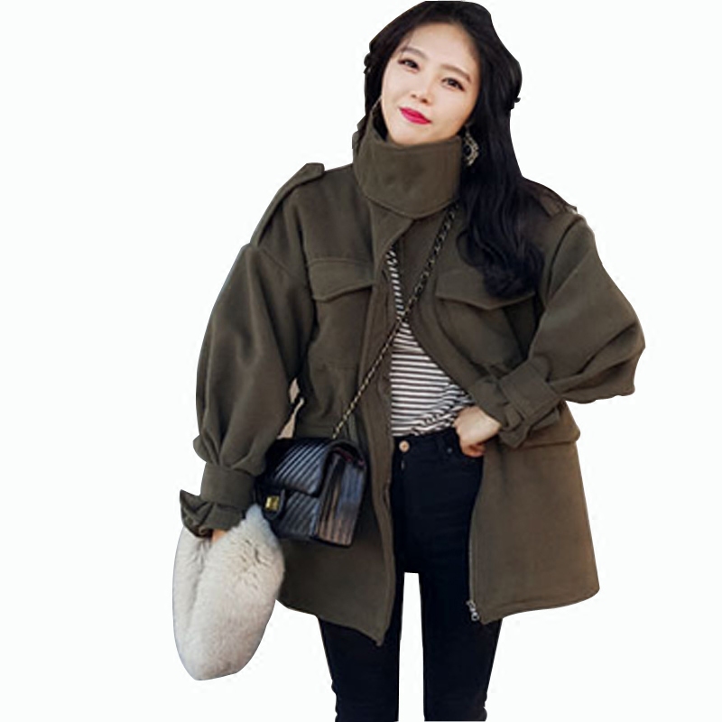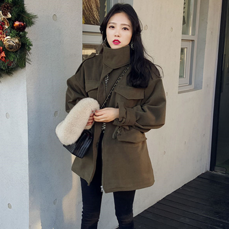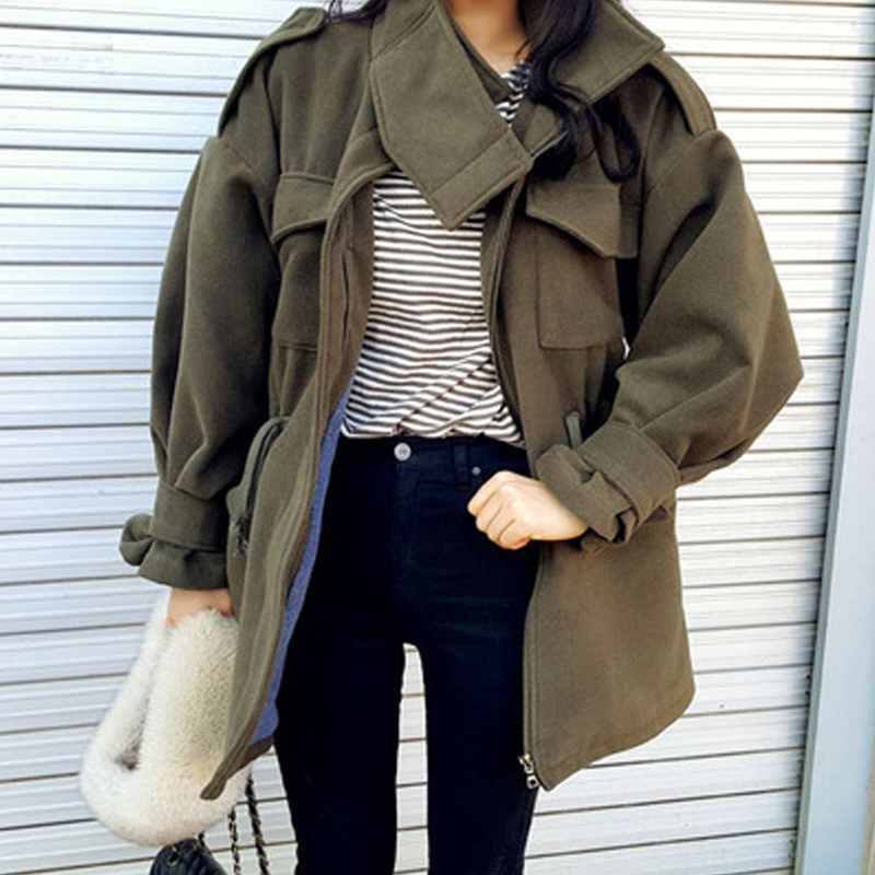 呢子大衣女韩版复古宽松收腰毛呢外套加绒厚中长款休闲工装bf风衣