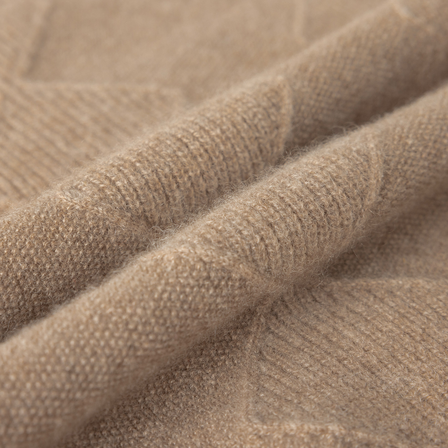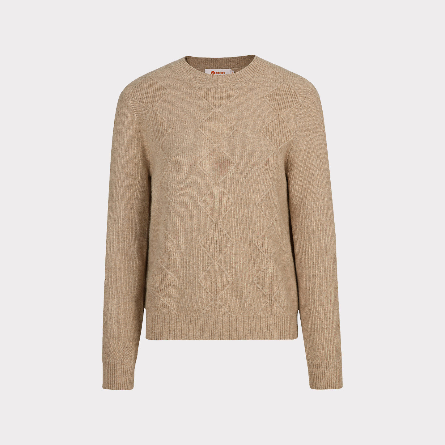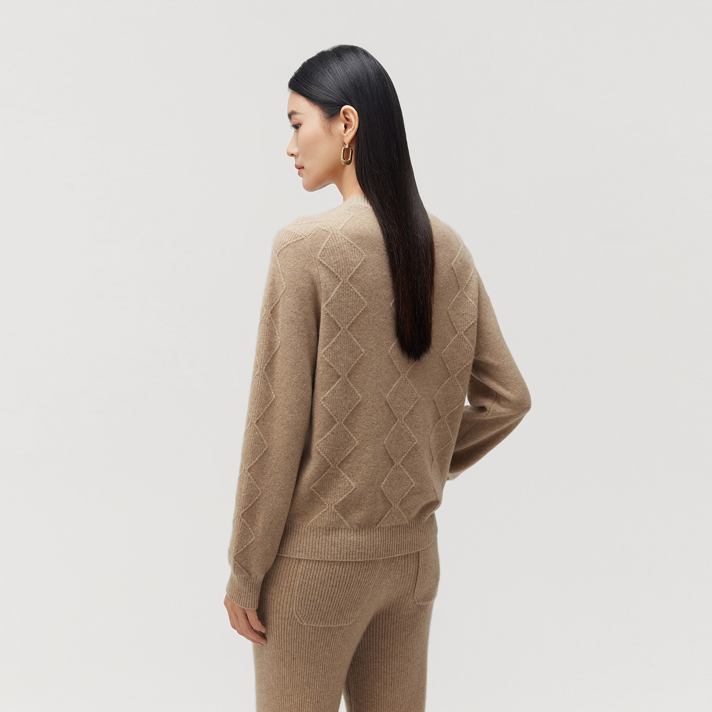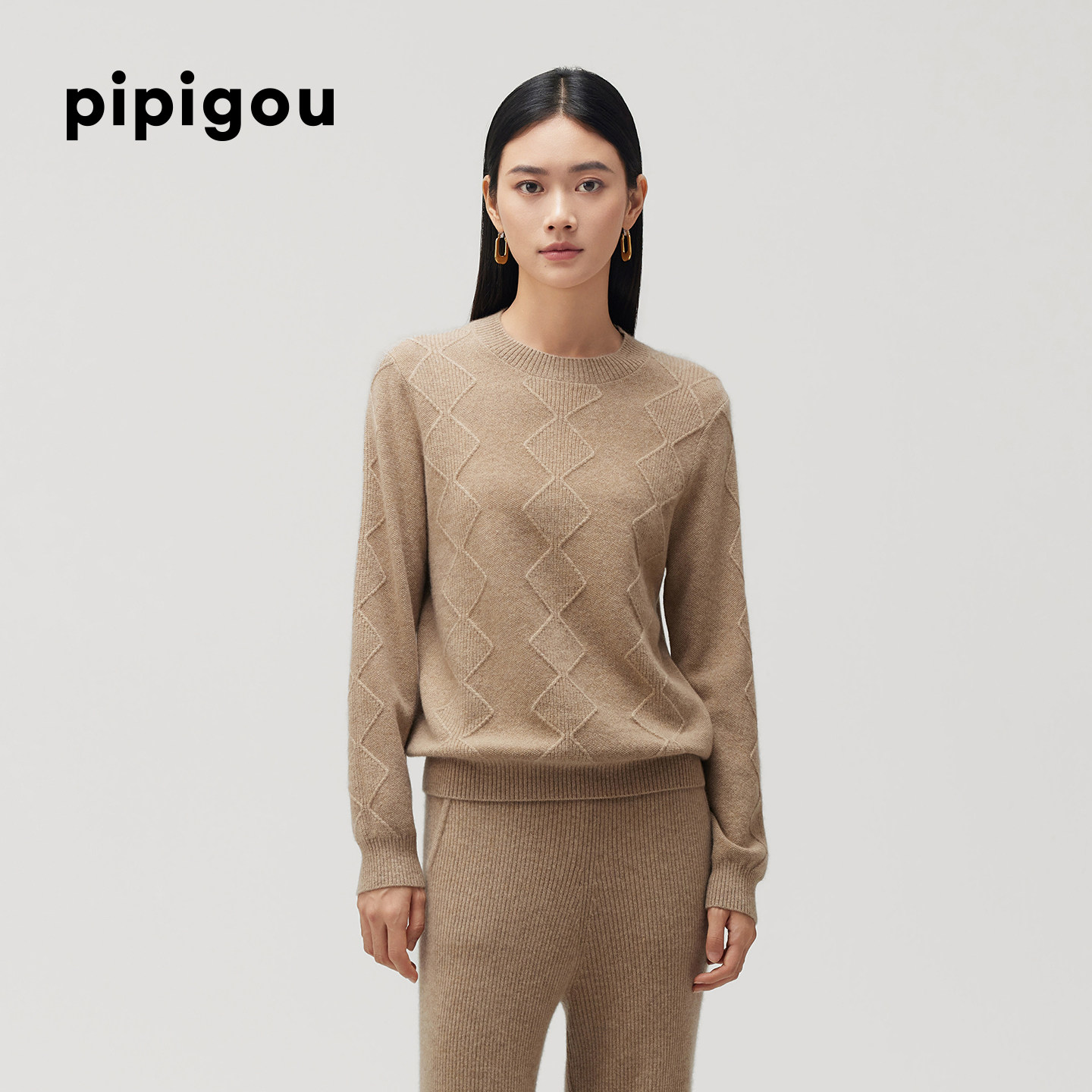 皮皮狗商场同款秋冬新款圆领立体菱格桂花针无染色羊绒衫女套头衫