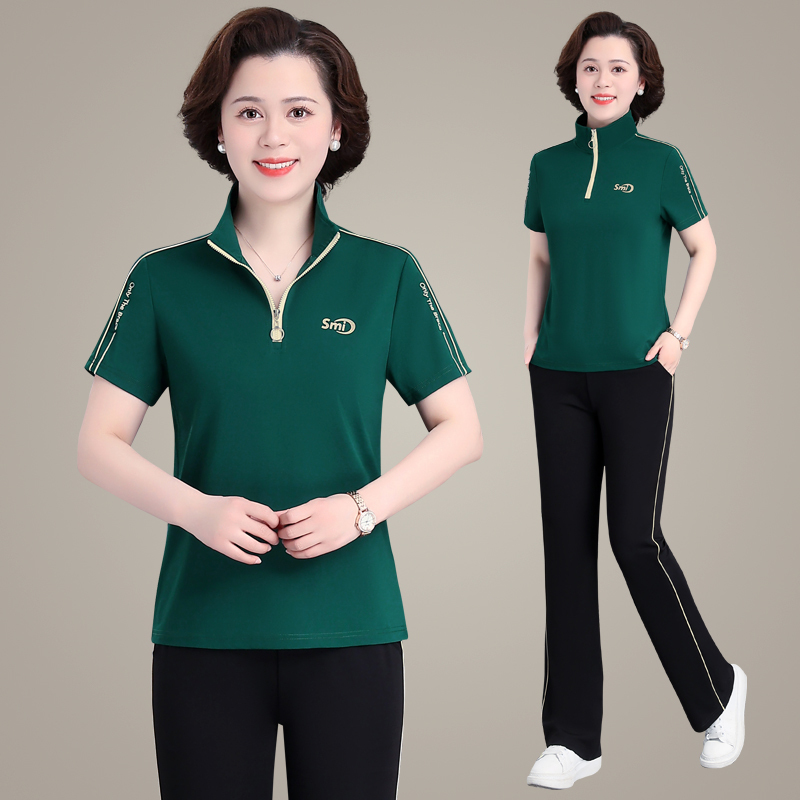中年妈妈2024夏装新款女士洋气套装夏季中老年人女装休闲运动衣服