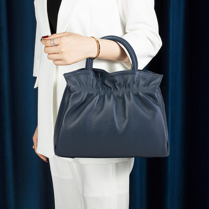 通勤单肩斜挎包女包2025秋冬新款真皮大容量手提包时尚褶皱软牛皮