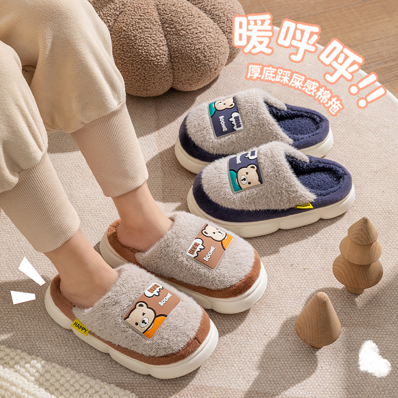 儿童棉拖鞋秋冬季新款中大男童加绒保暖亲子室内家居寝室毛毛拖鞋