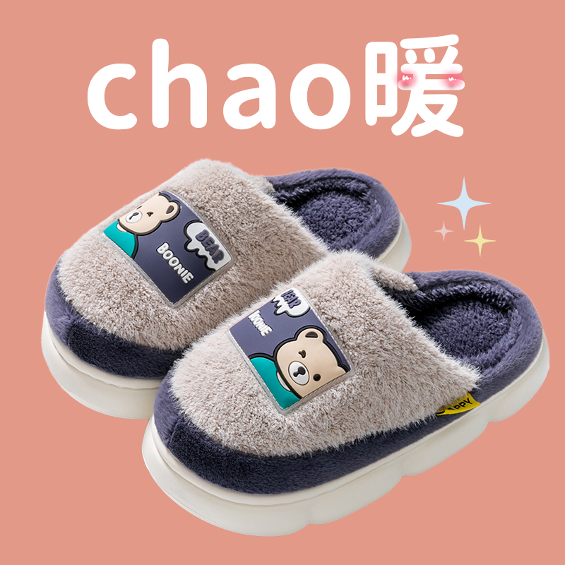男童女孩加绒保暖儿童棉拖鞋
