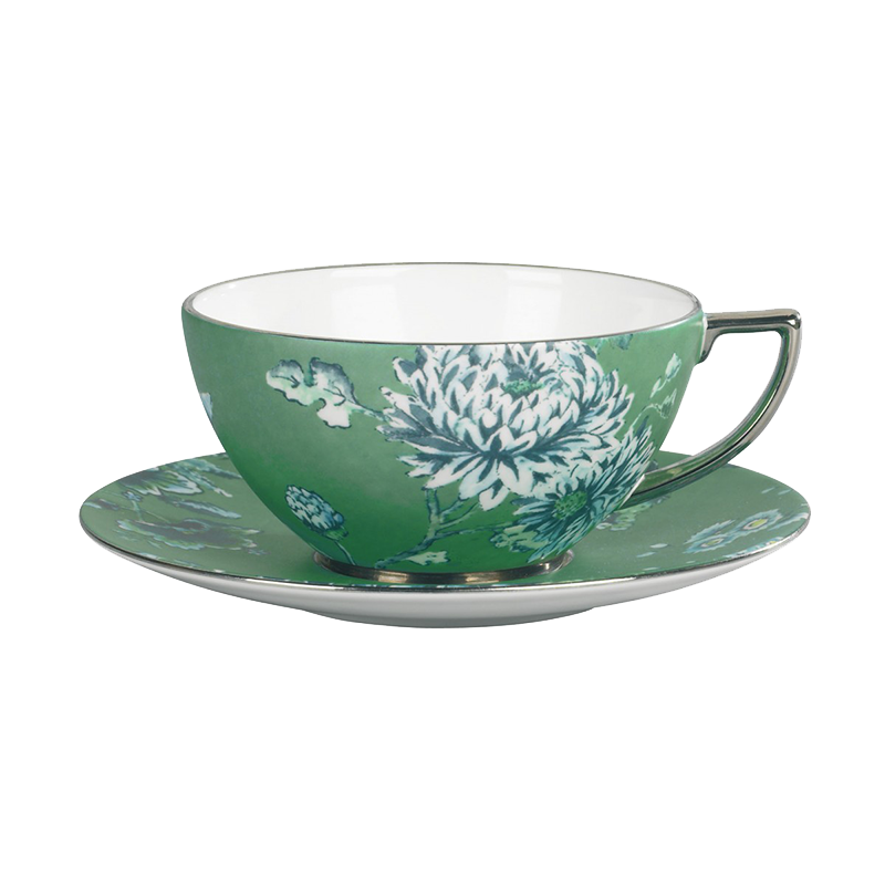 现货英国WEDGWOOD翠玉凤凰红茶杯早餐杯白绿色中国风设计礼盒装
