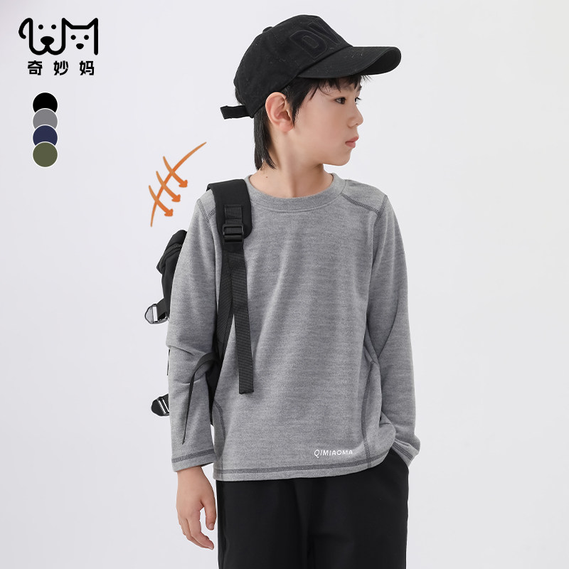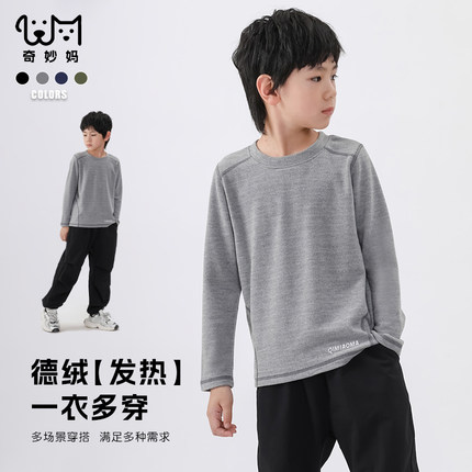 春秋季儿童打底衫男童长袖t恤中大童德绒秋装上衣青少年秋衣童装