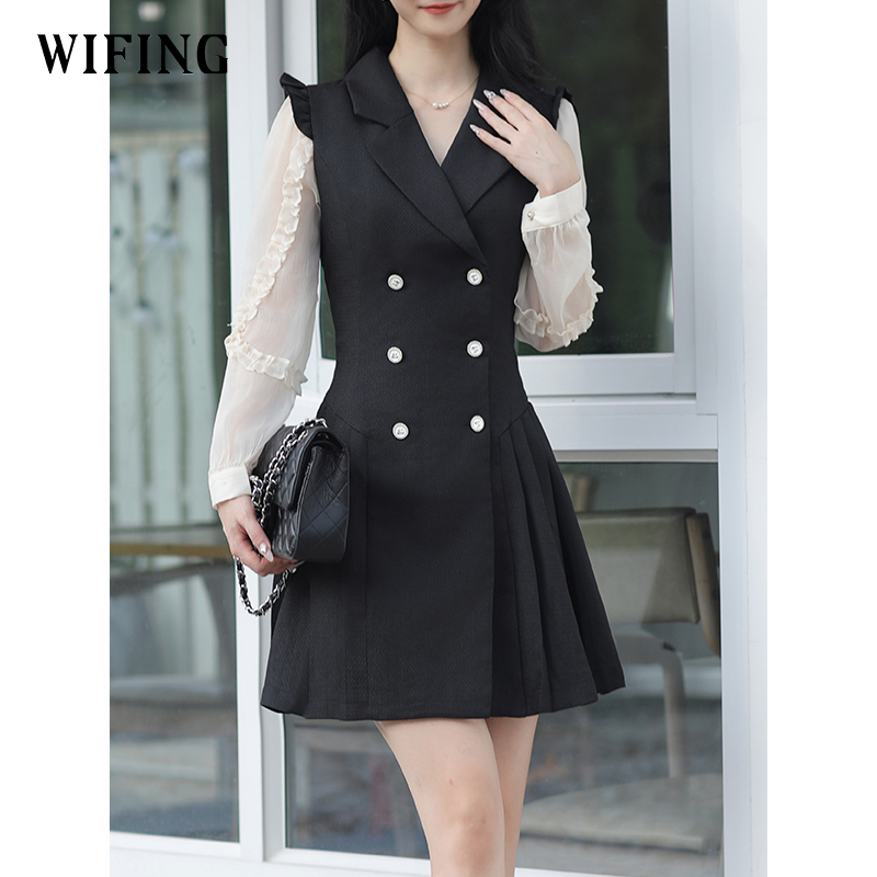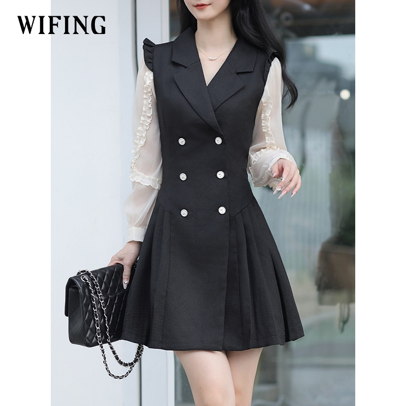 未风黑色西装领连衣裙女秋2025秋装新款女装气质显瘦职场通勤裙子