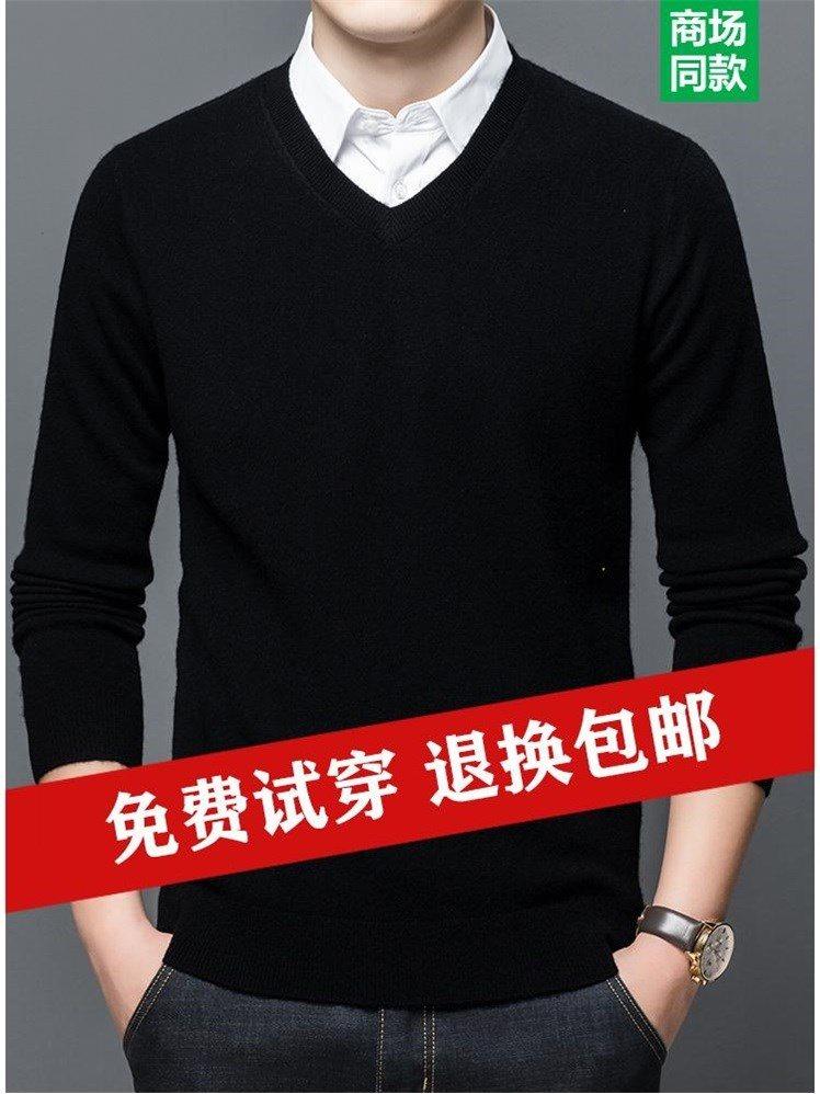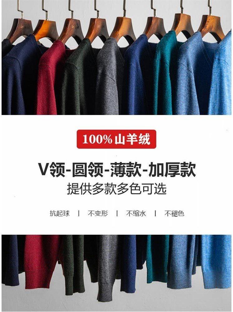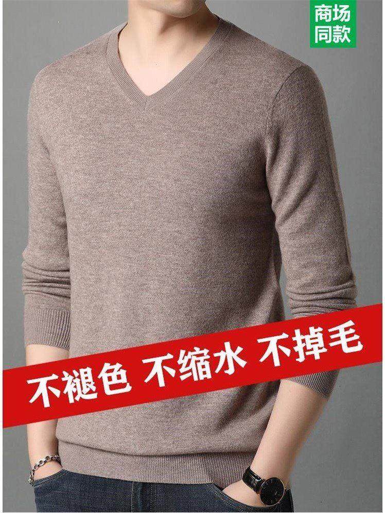 鄂尔多斯市产秋冬羊绒衫男v领薄款毛衣套头纯色鸡心领打底羊毛衫