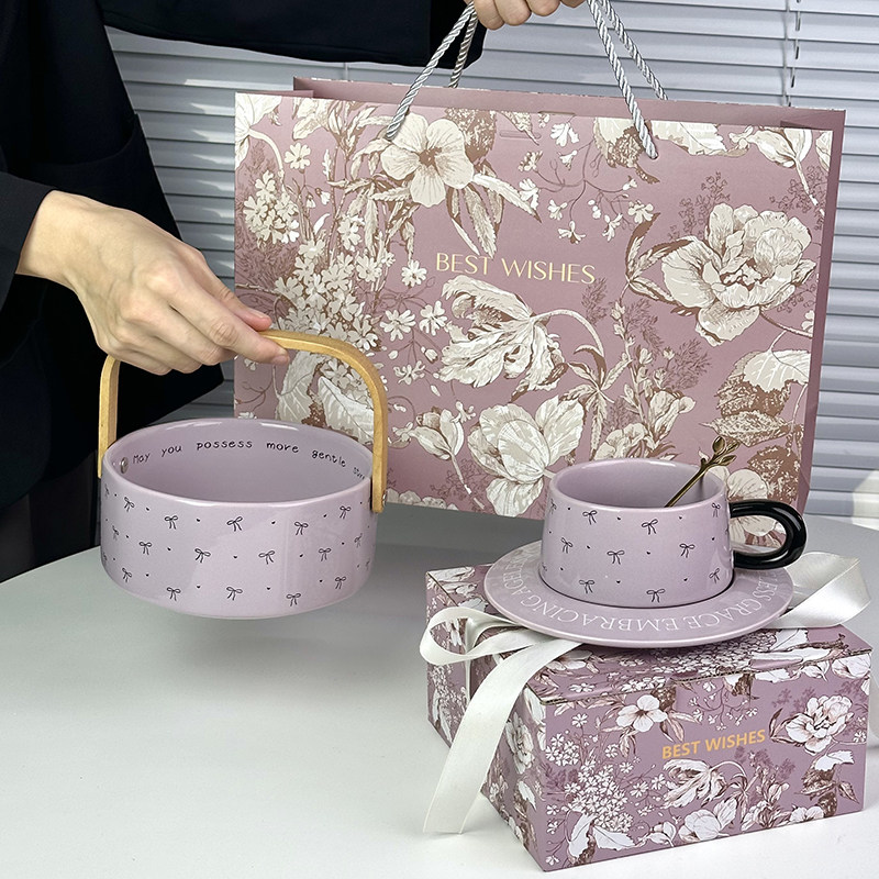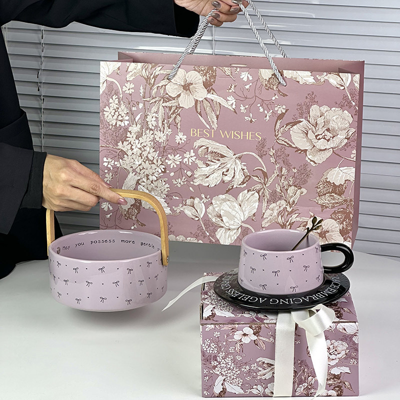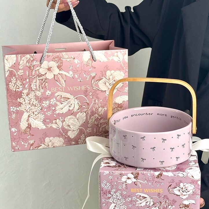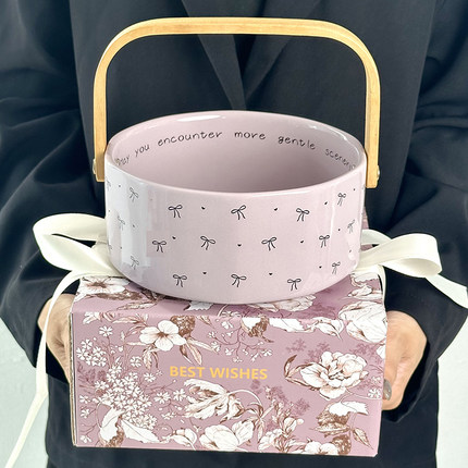 高级精致水果盘家用客厅茶几陶瓷手提篮干果盘零食摆放盘伴手礼物