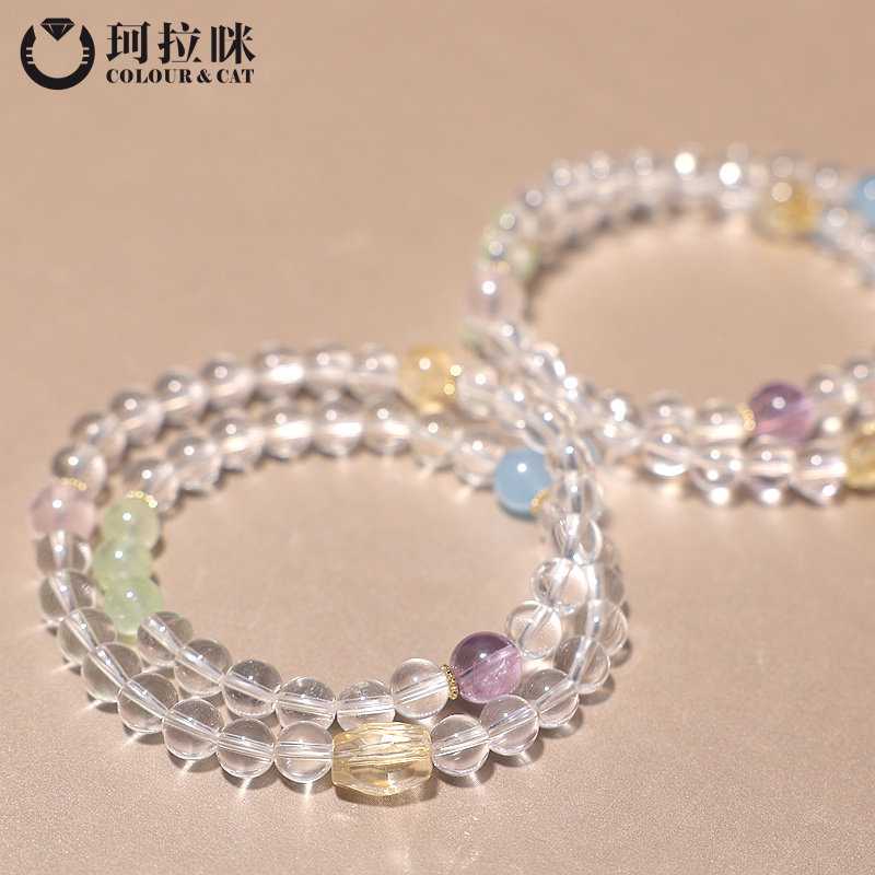 珂拉咪天然白水晶黄水晶海蓝宝葡萄石紫水晶黄塔晶粉晶水晶手串