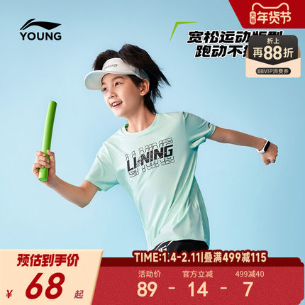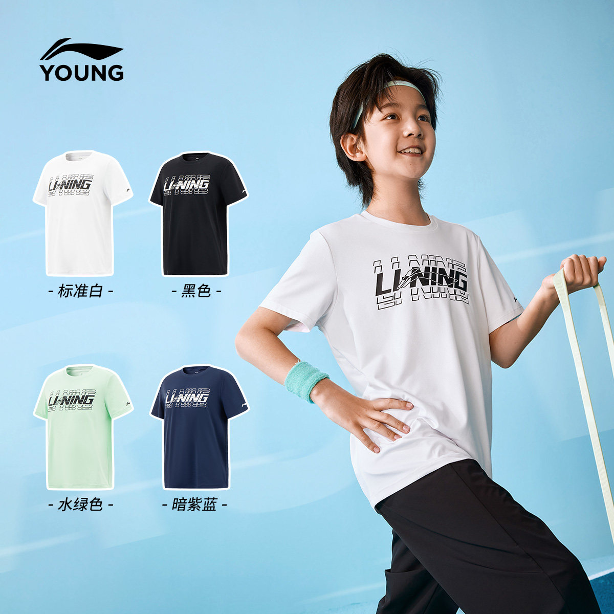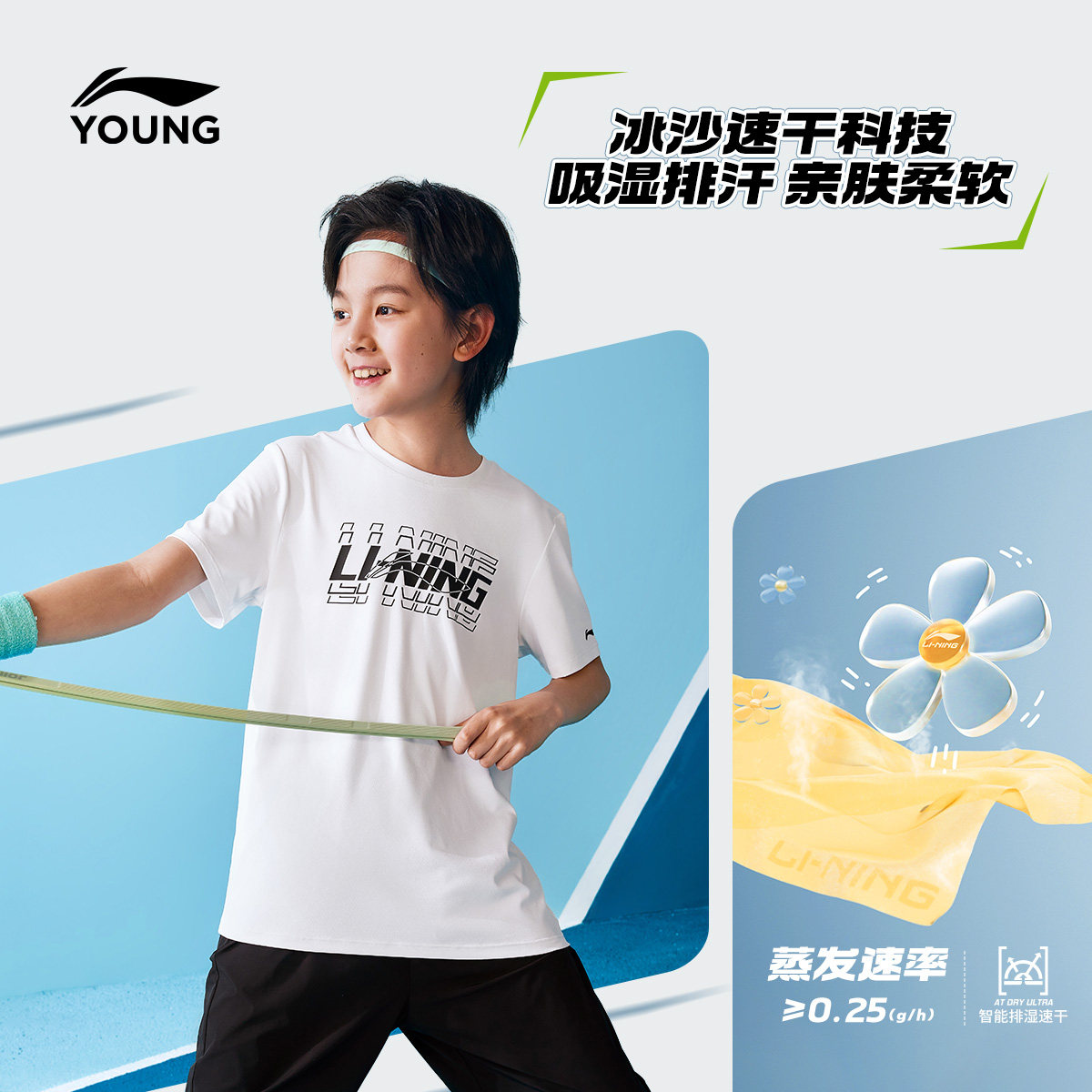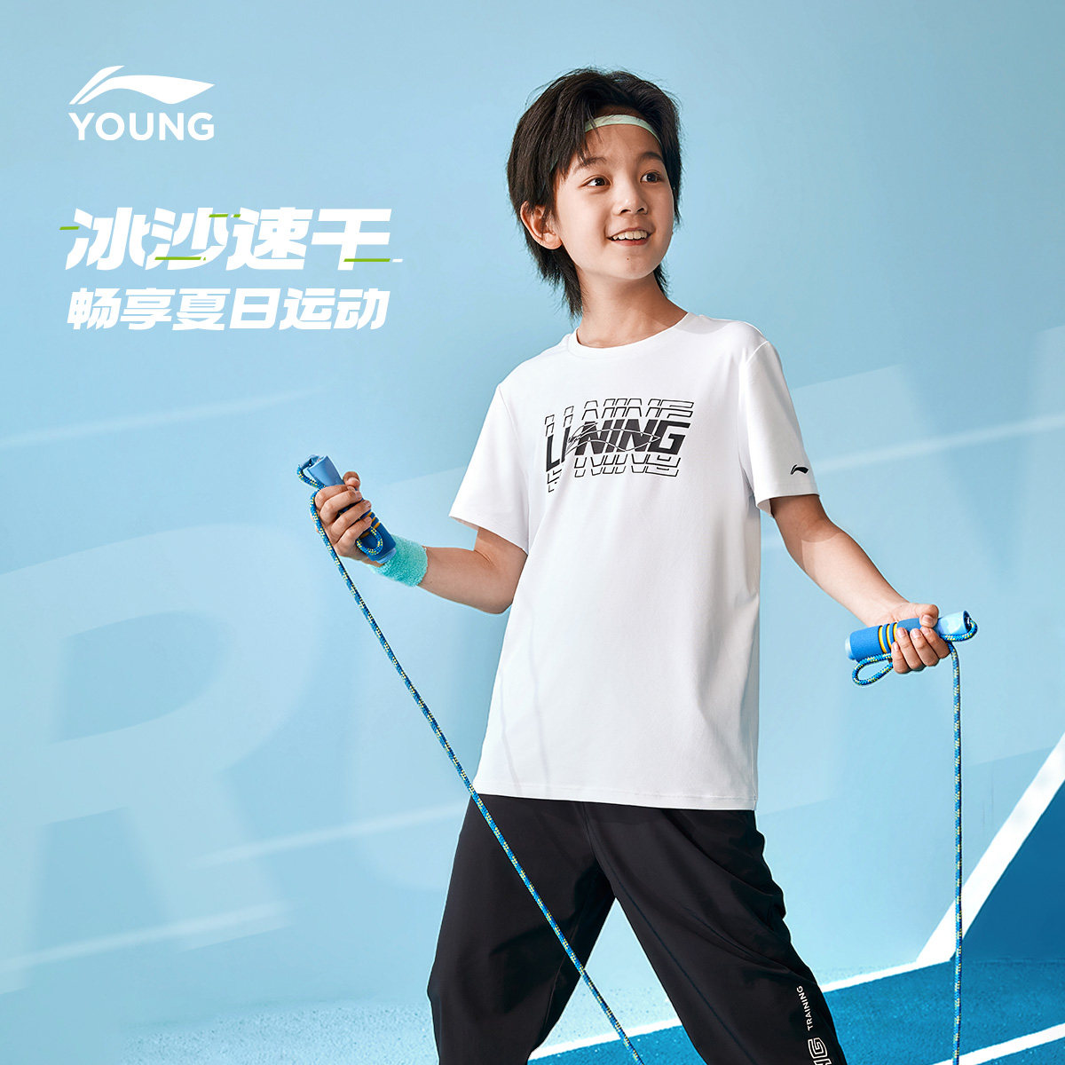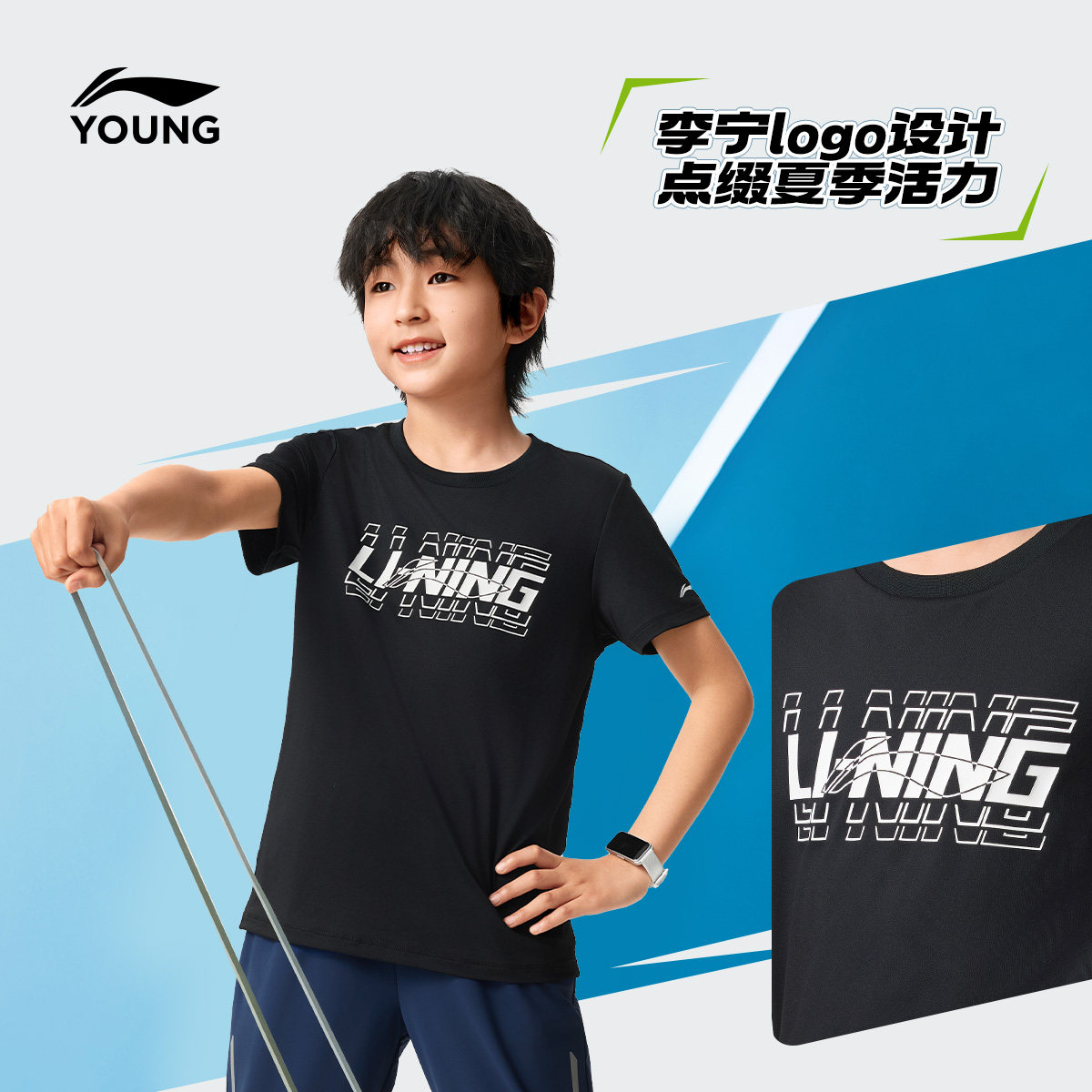 李宁儿童速干衣宽松短袖T恤2025新款夏季男童装中大童青少年夏装