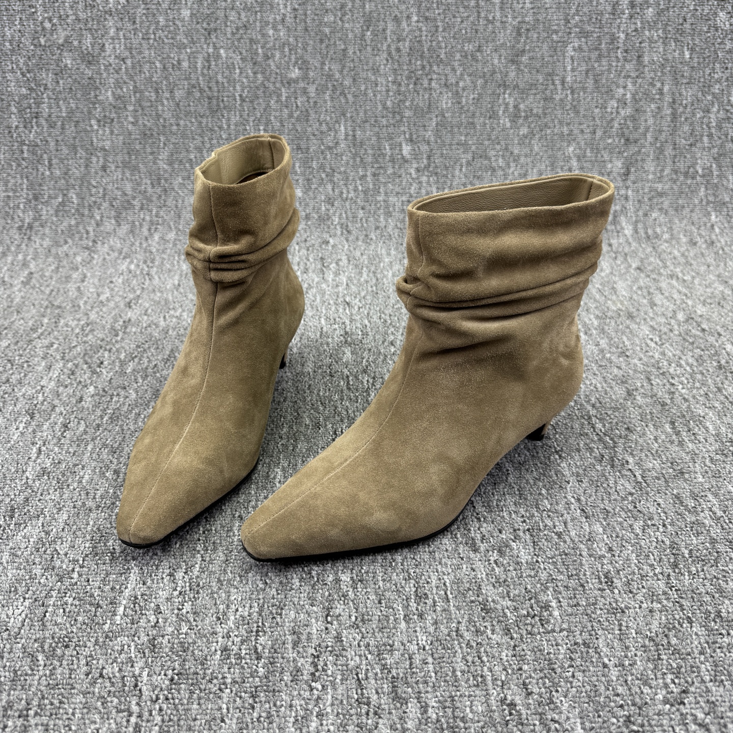 欧洲站欧货2025秋季新款尖头细跟时尚女短靴磨砂皮高跟套筒时装靴