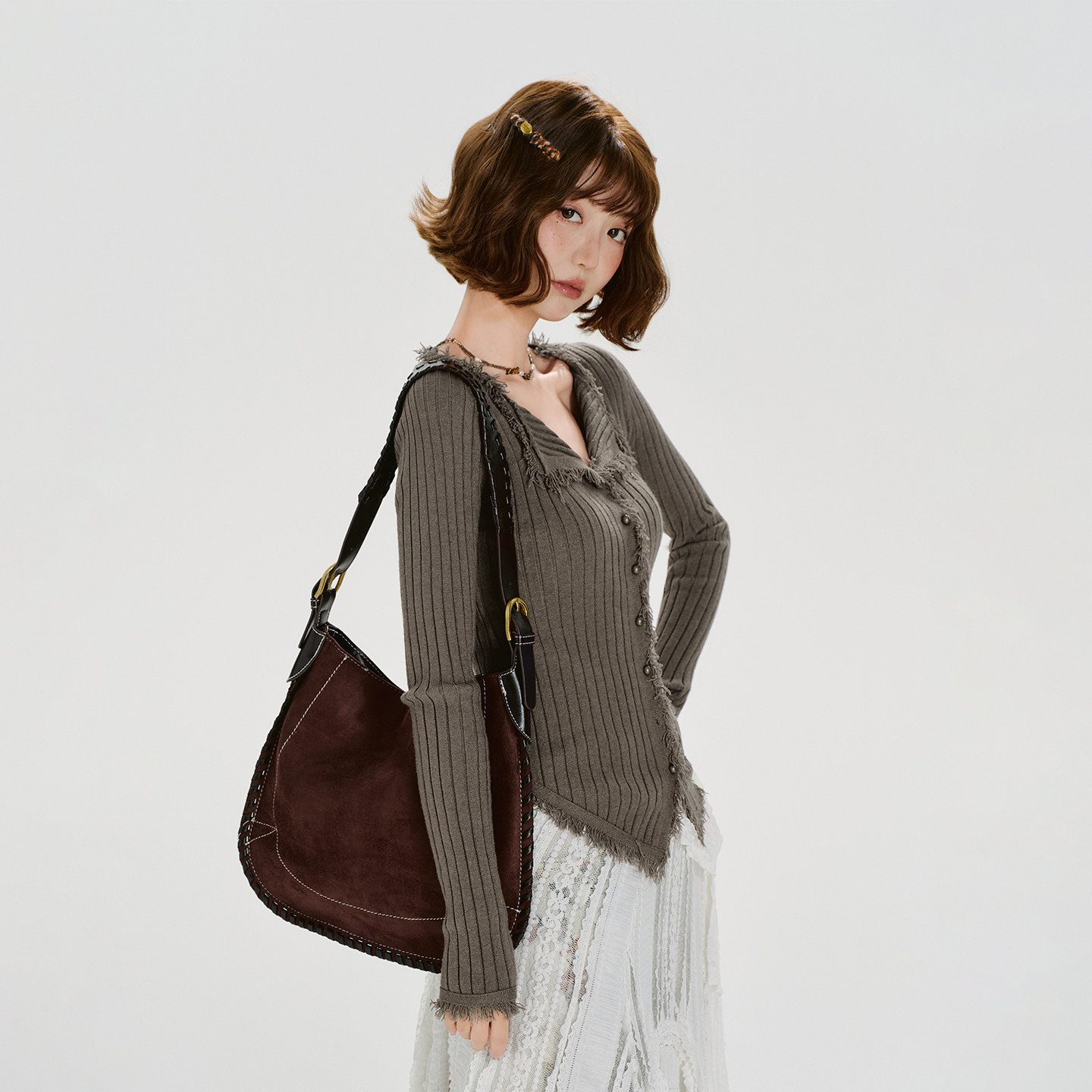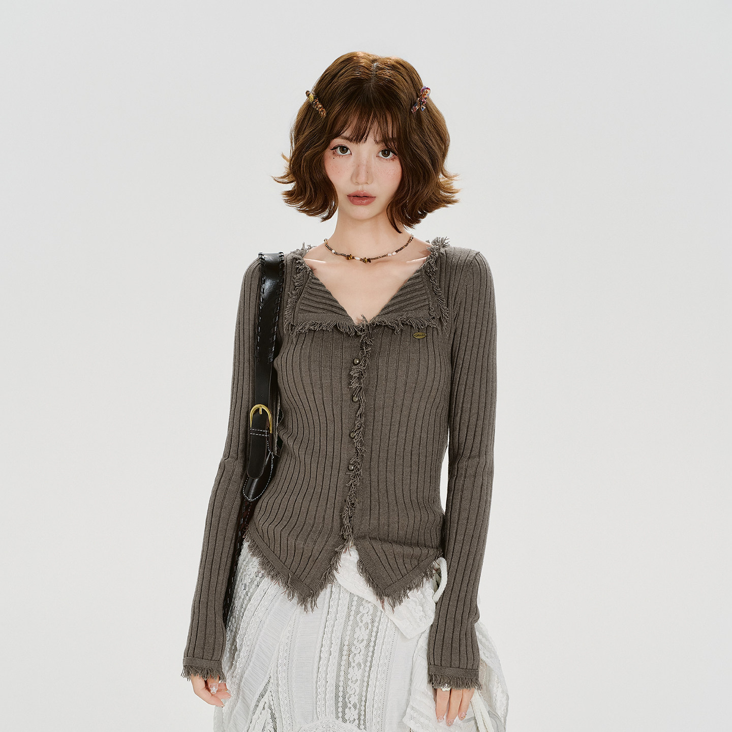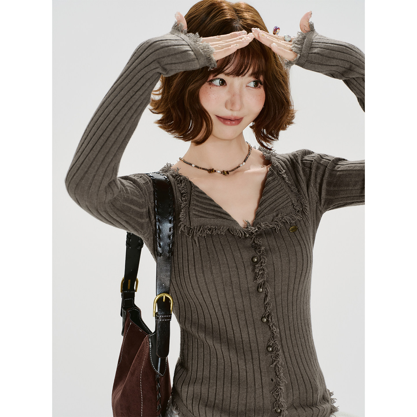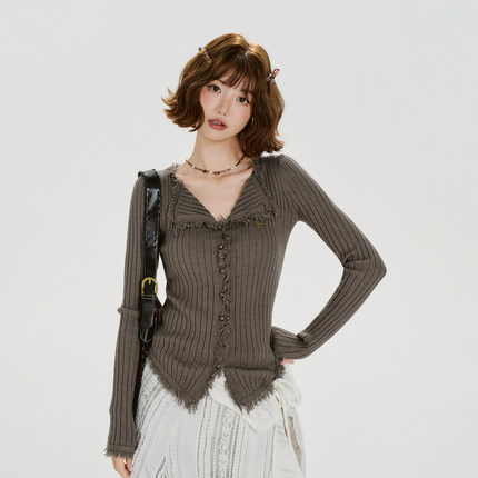 Girlyhalo美式复古辣妹流苏针织开衫女秋新款设计感修身显瘦上衣