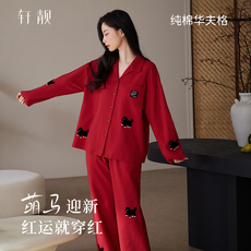 都市丽人情侣睡衣纯棉结婚本命年红色家居服长袖长裤套装2025新款