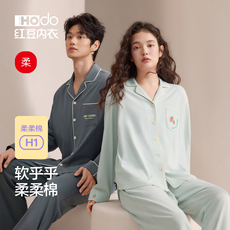 红豆纯棉睡衣长袖男士女春秋新款夏带胸垫防螨抗菌A类家居服套装