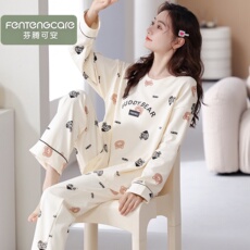芬腾新款睡衣套装少女长袖春秋款全棉高级感开衫纯棉春秋季家居服