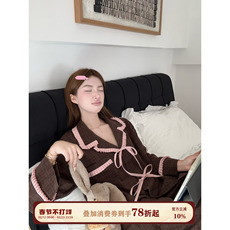 JoyceBra 甜美撞色蝴蝶结花边睡衣套装女纯棉可外穿家居服两件套