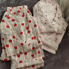 纯棉双层纱布薄款数印清新唯美风甜美女生睡衣家居服春夏长袖长裤