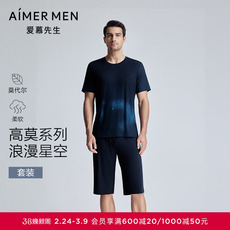 爱慕先生防螨抗菌凉感家居服男士开衫短袖长裤睡衣套装春夏可外穿