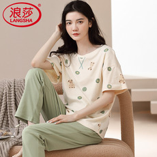 浪莎睡衣女士春夏季纯棉短袖长裤薄款套装休闲可外穿夏款家居服