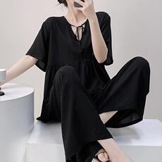 美标新款七分袖新中式中国风套装莱赛尔睡衣女春夏季可外穿家居服