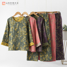 中老年人纯棉长袖家居服套装女春夏薄款圆领睡衣套装妈妈对襟睡衣