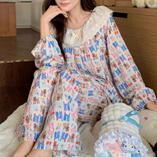 METWO贵妇粉调长袖家居服两件套女 春夏款纯棉甜美风休闲睡衣套装