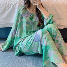 o家贡缎舒适简约睡衣春夏可外穿休闲人棉稠长袖家居服女薄款套装