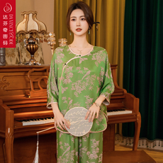 达芬奇密码春夏新款新中式国风高级冰丝睡衣仿丝绸真丝家居服套装