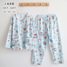 全棉斜纹布睡衣女春夏薄款长袖碎花100%纯棉布睡衣家居服大码加肥