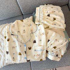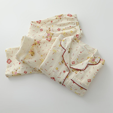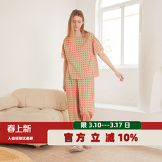 美标2026春夏新款纯棉睡衣女士文艺复古双层棉纱全棉质家居服套装